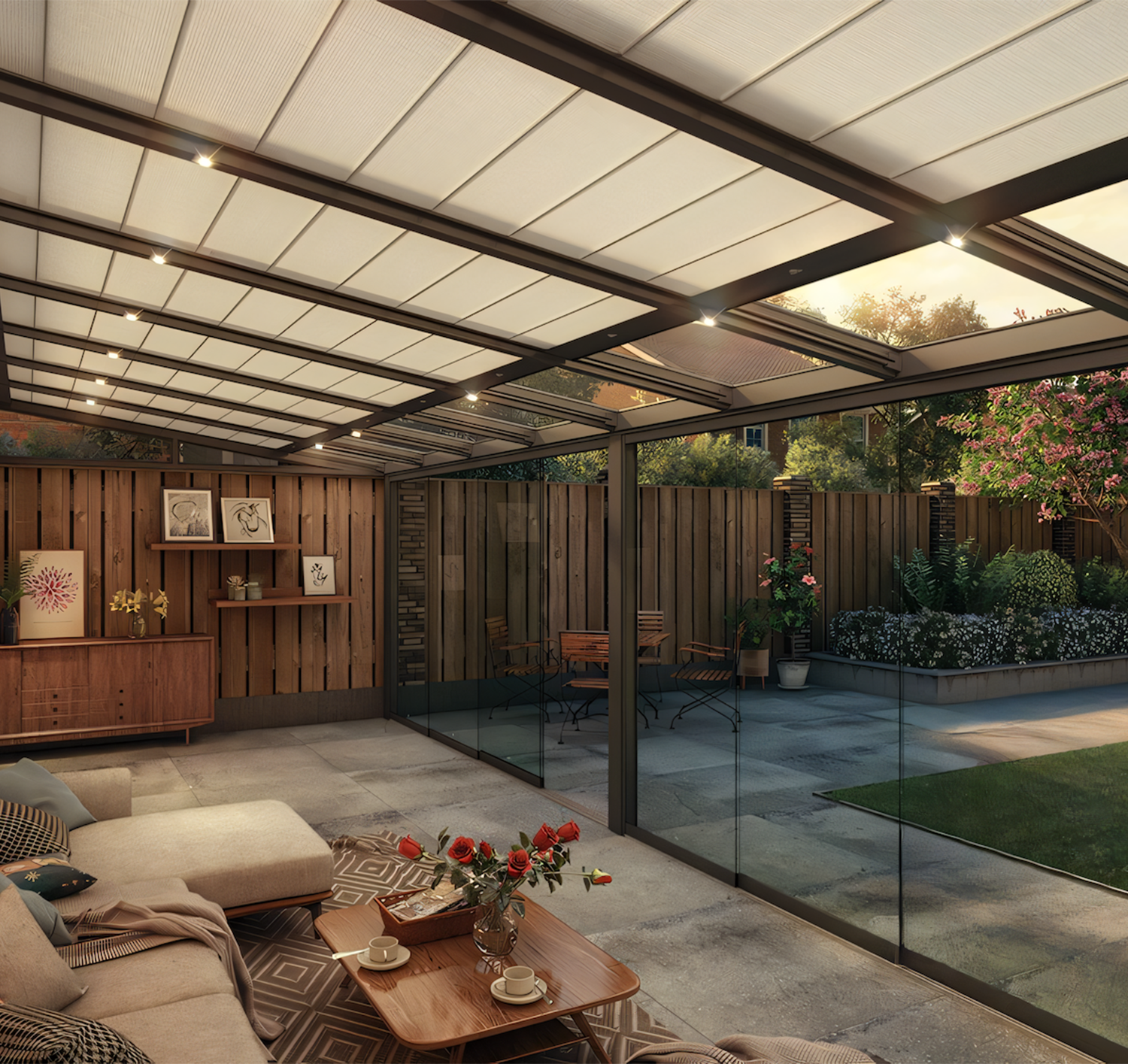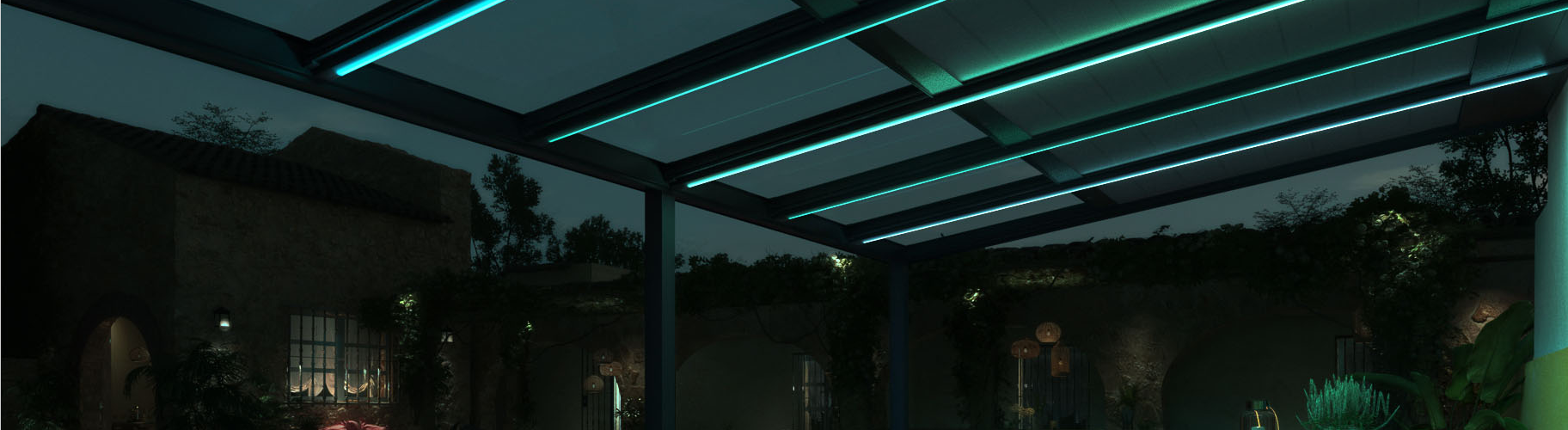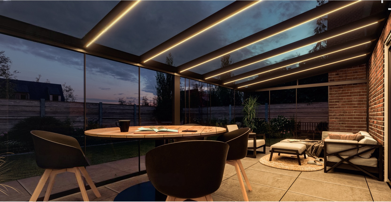La luce sotto la tua veranda è essenziale per creare l’atmosfera giusta. Quando il sole tramonta, il sistema di illuminazione Verande garantisce la luminosità ideale, grazie ai punti luce dimmerabili. Scegli tra una vasta gamma di colori e tonalità per ogni momento, dalle cene intime ai momenti di relax. Il design innovativo ti permette di personalizzare ogni punto luce, offrendo sempre l’atmosfera perfetta.