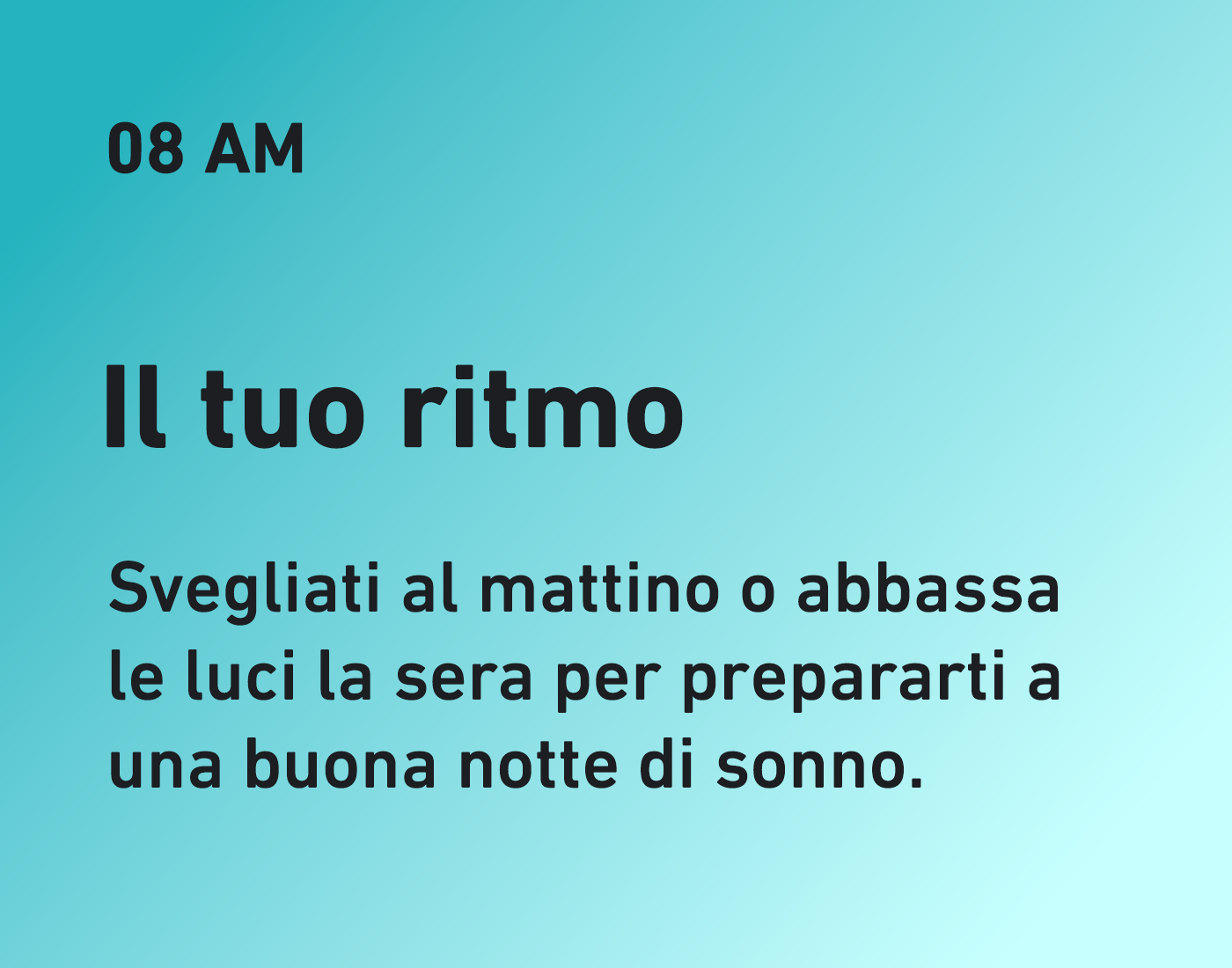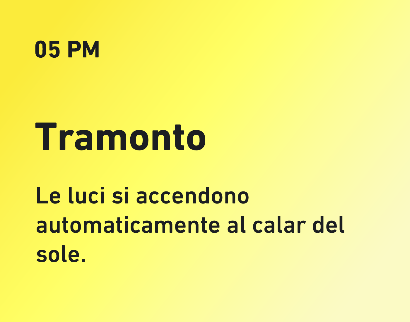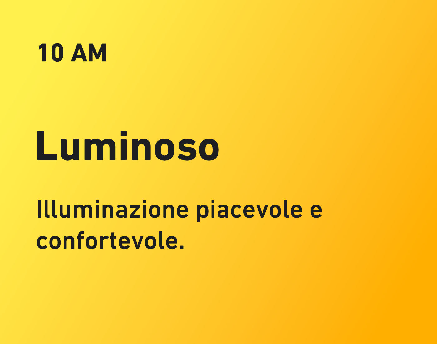 Con un sistema Smart Home, puoi facilmente configurare il sistema di illuminazione per la tua routine automatica quotidiana. In questo modo, l'illuminazione si adatta al momento della giornata.