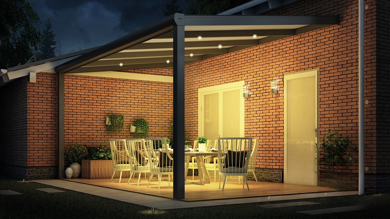 Grazie al loro design minimalista, i faretti si integrano perfettamente nelle nostre Verande, con trasformatori e cavi nascosti dietro i pannelli a scatto della struttura, garantendo uno stile funzionale e senza tempo.